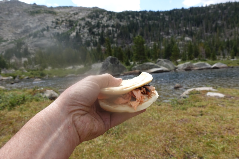 Lunch: Shadow Lake brook trout on garlic naan bread