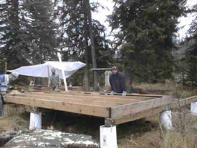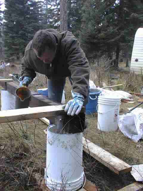 Brad and Roadkill pouring the cement footings.