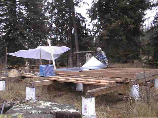 Now Neil and Doug flip the west half floor section over so that the metal is on the bottom.