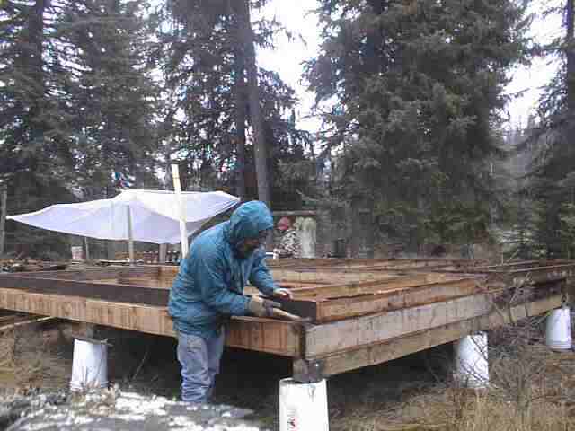 Now we align the floor sections with brute force and nail them in to place.