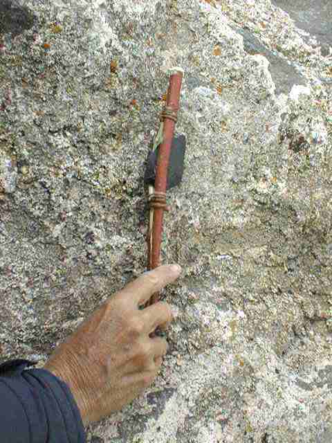 A Hoku knife from Dick Baugh's workshop. This is a quick to make stone age "box cutter".