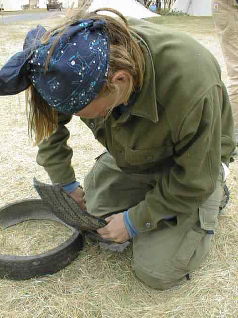 Making sandals from dumpster dived tires (non steel belted!).