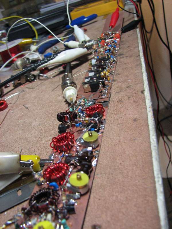 The ugly board is the PLL down mix with 5.5 MHz LPF and some gain before going in to the phase/freq det PCB