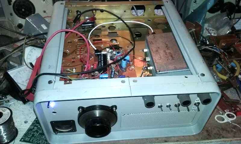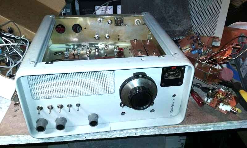 The chassis was a hamfest carcass with speaker grill and S meter already set up on the front.