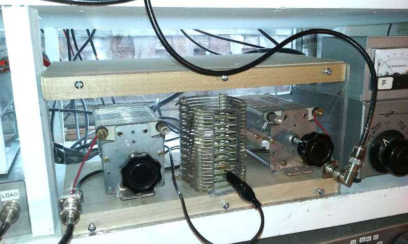 The CLC AirDux tuner ready for antenna matching. The wood base allows the caps to "float" in series.