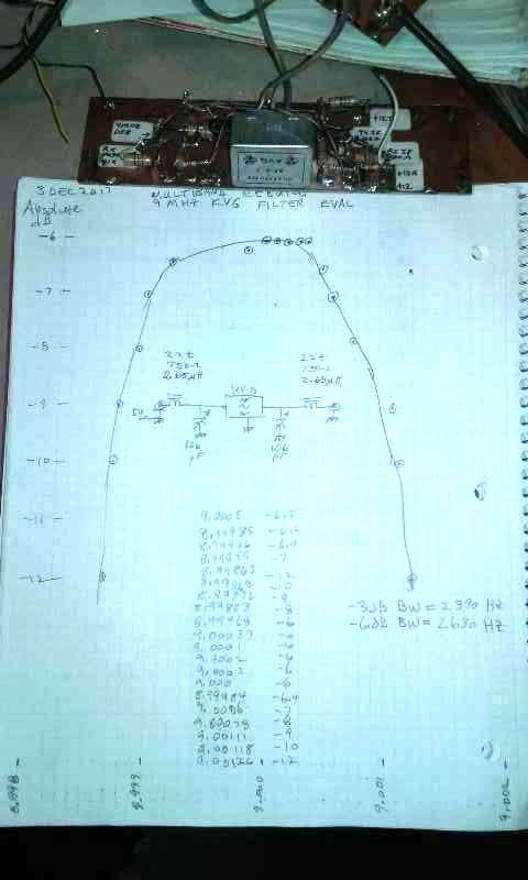 9 MHz .1dB Chebycheff at approx 3.26 kHz. Design target was 3.0 kHz.